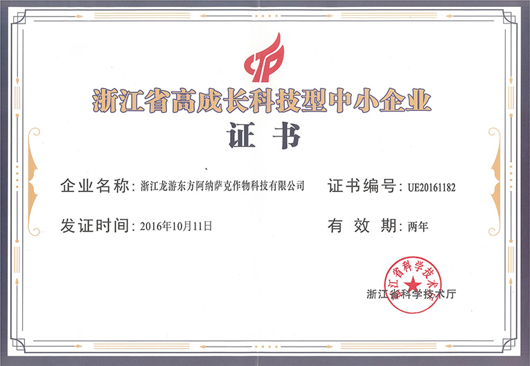 浙江省高成長(zhǎng)科技型中小企業(yè)